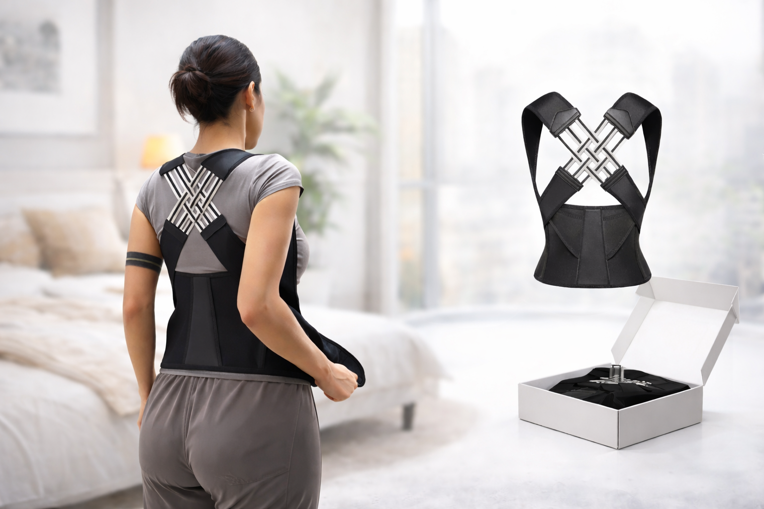 1Gently pulls shoulders backHelps guide your body into a natural upright position.